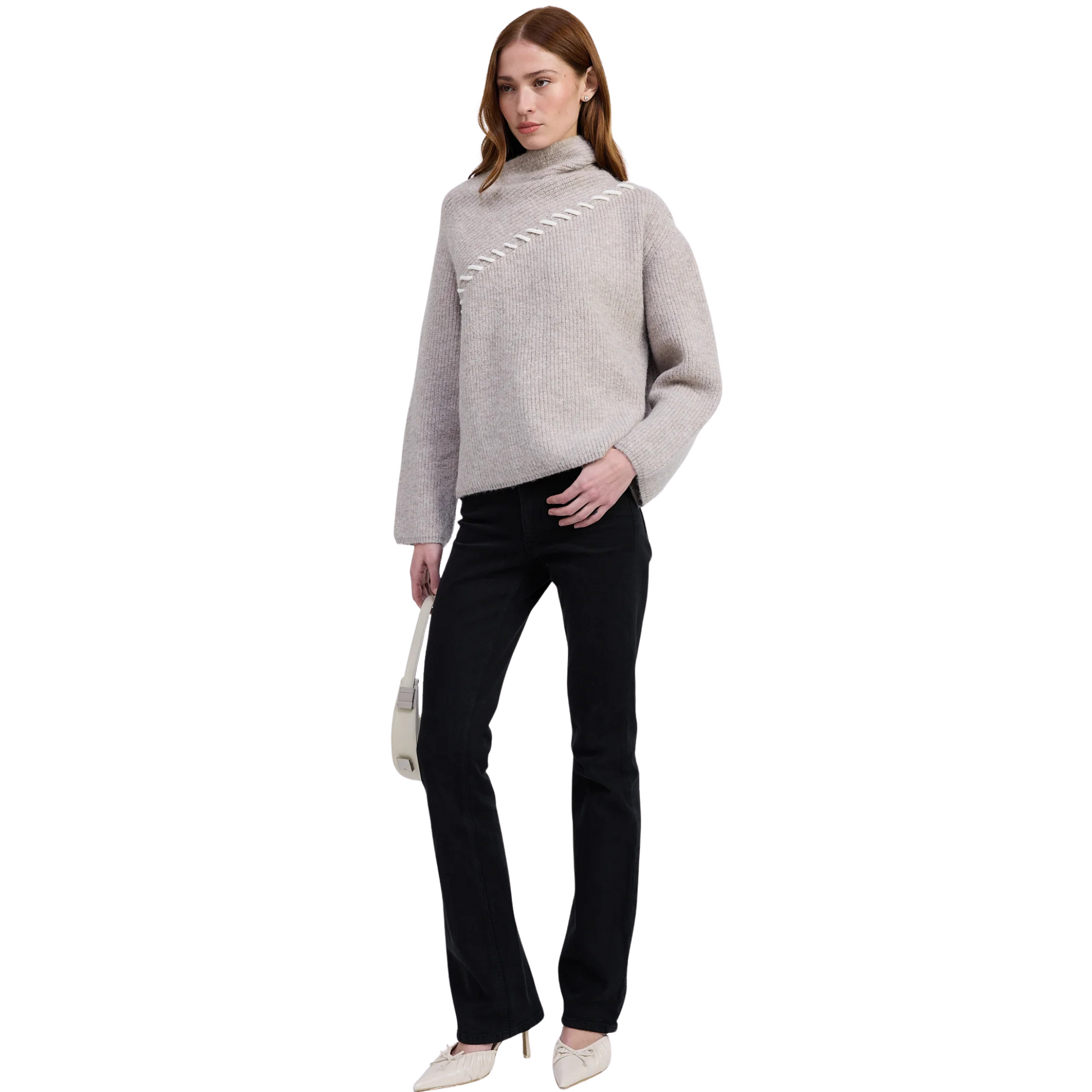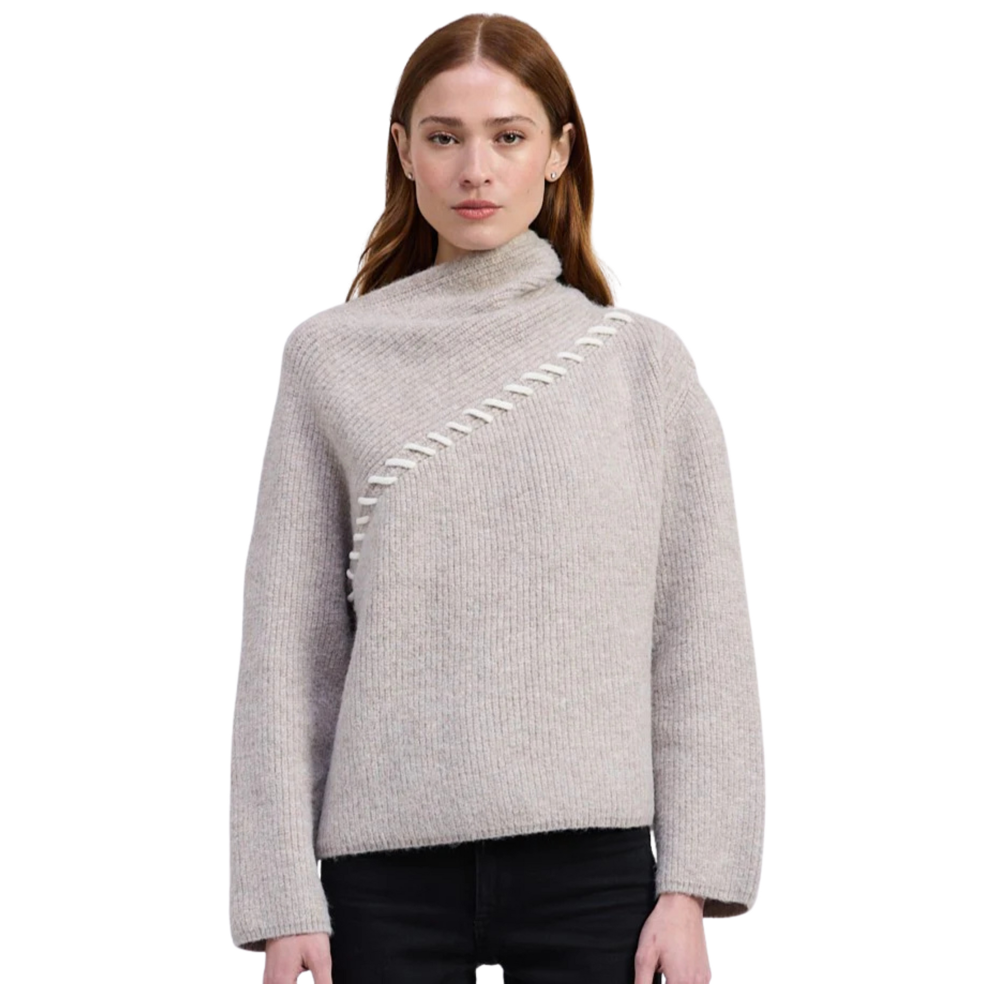 - Asymmetric Neckline Cowl Sweater With Whip Stitch Detailing