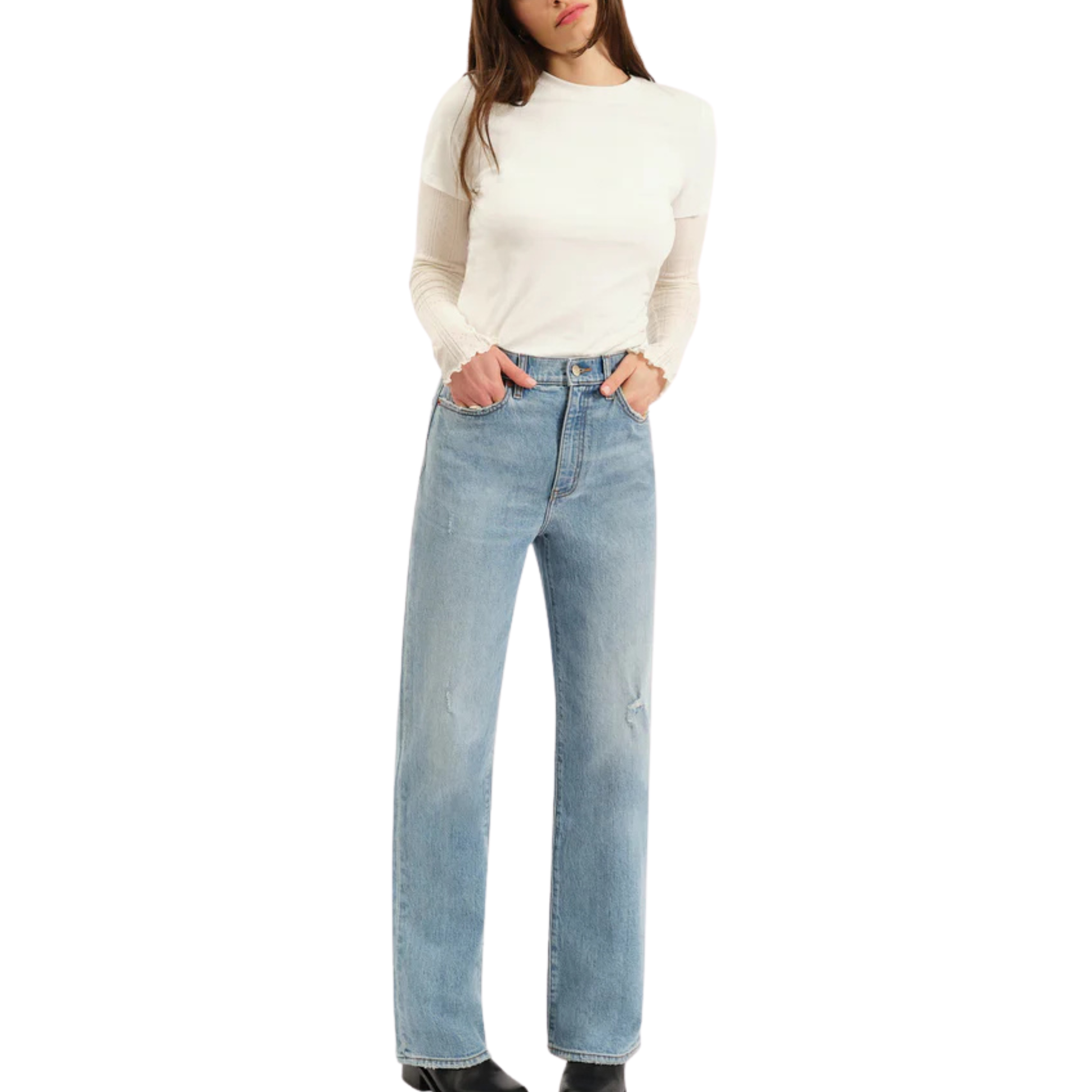 The City Straight in Be Mine Vintage is a high rise straight leg jean in a timeless light blue wash. Clean hems and straight lines make this a versatile jean for any occasion.