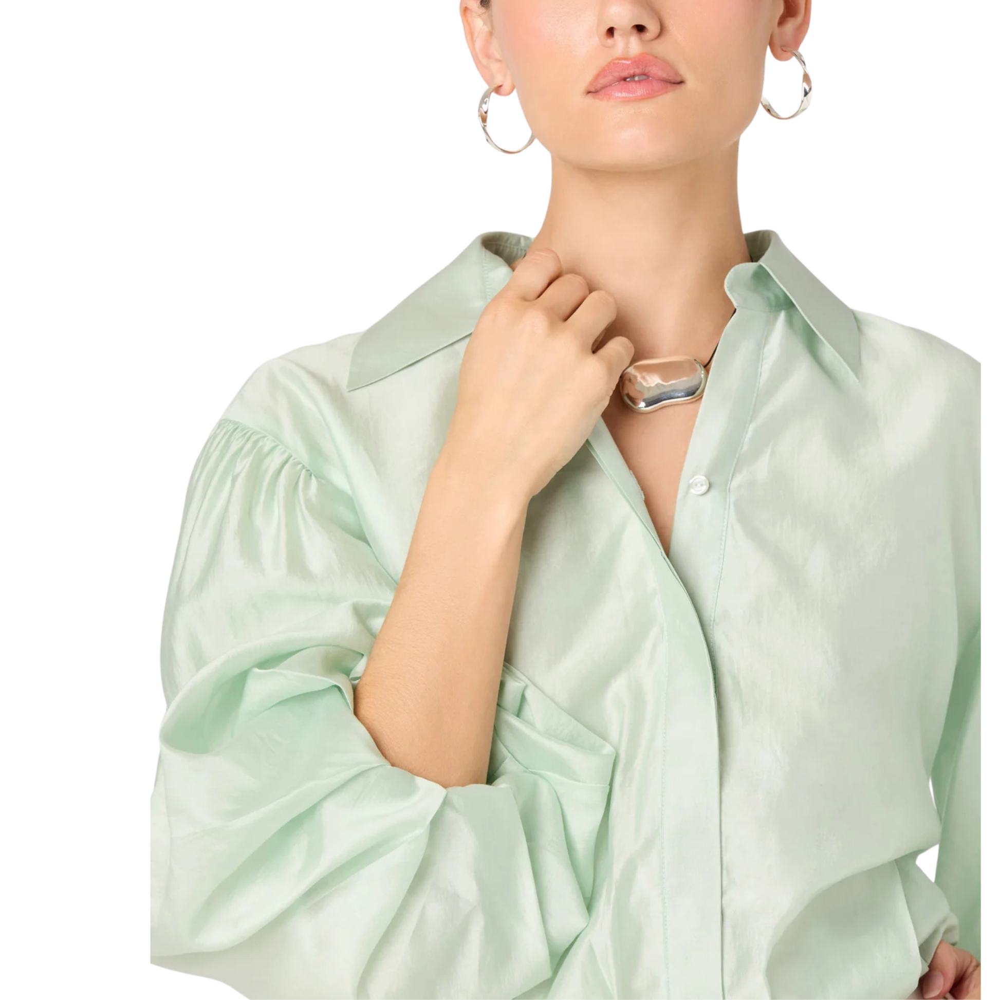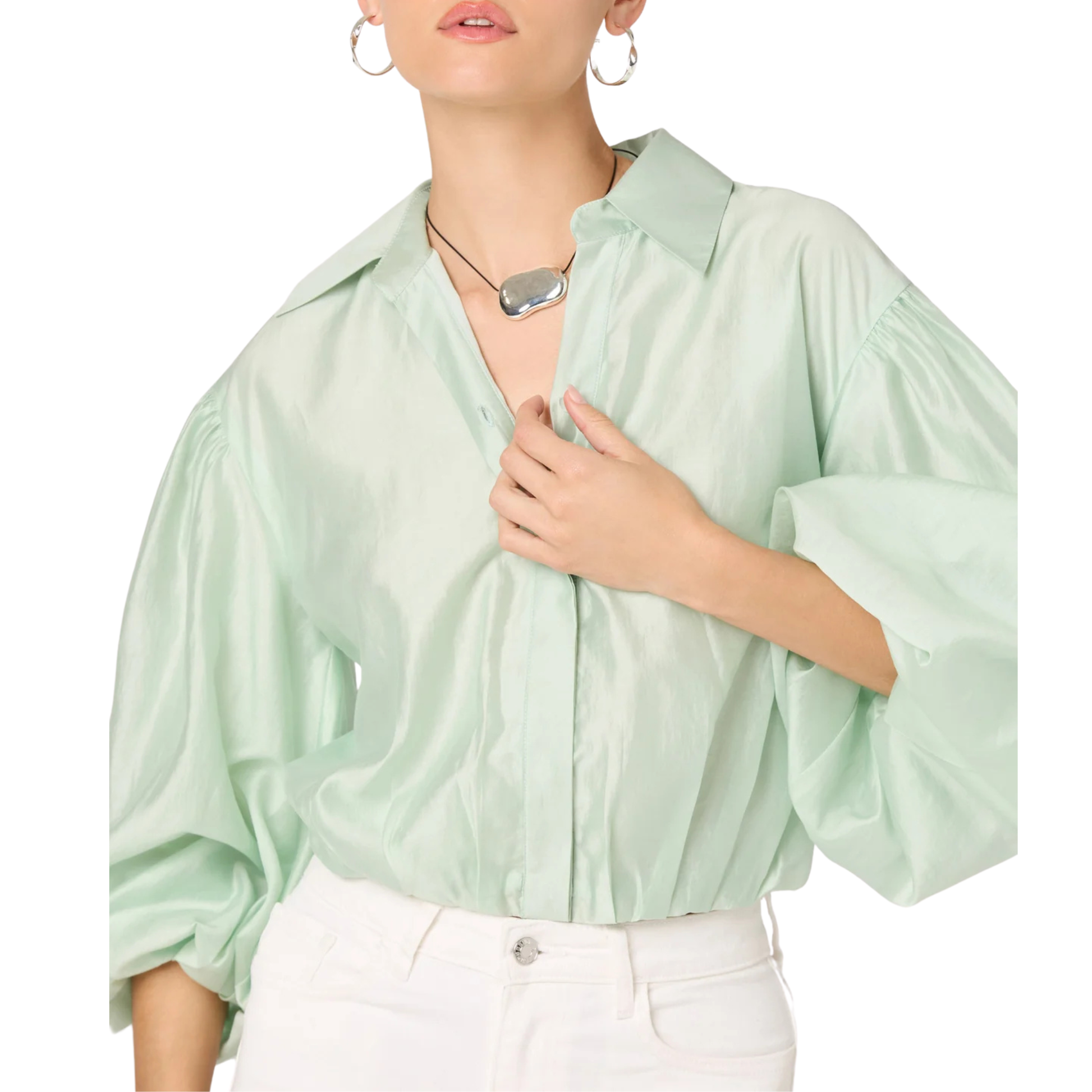 This top features soft balloon sleeves with a bracelet length cut for a contemporary silhouette. A polished staple that transitions seamlessly from workdays to evening plans.