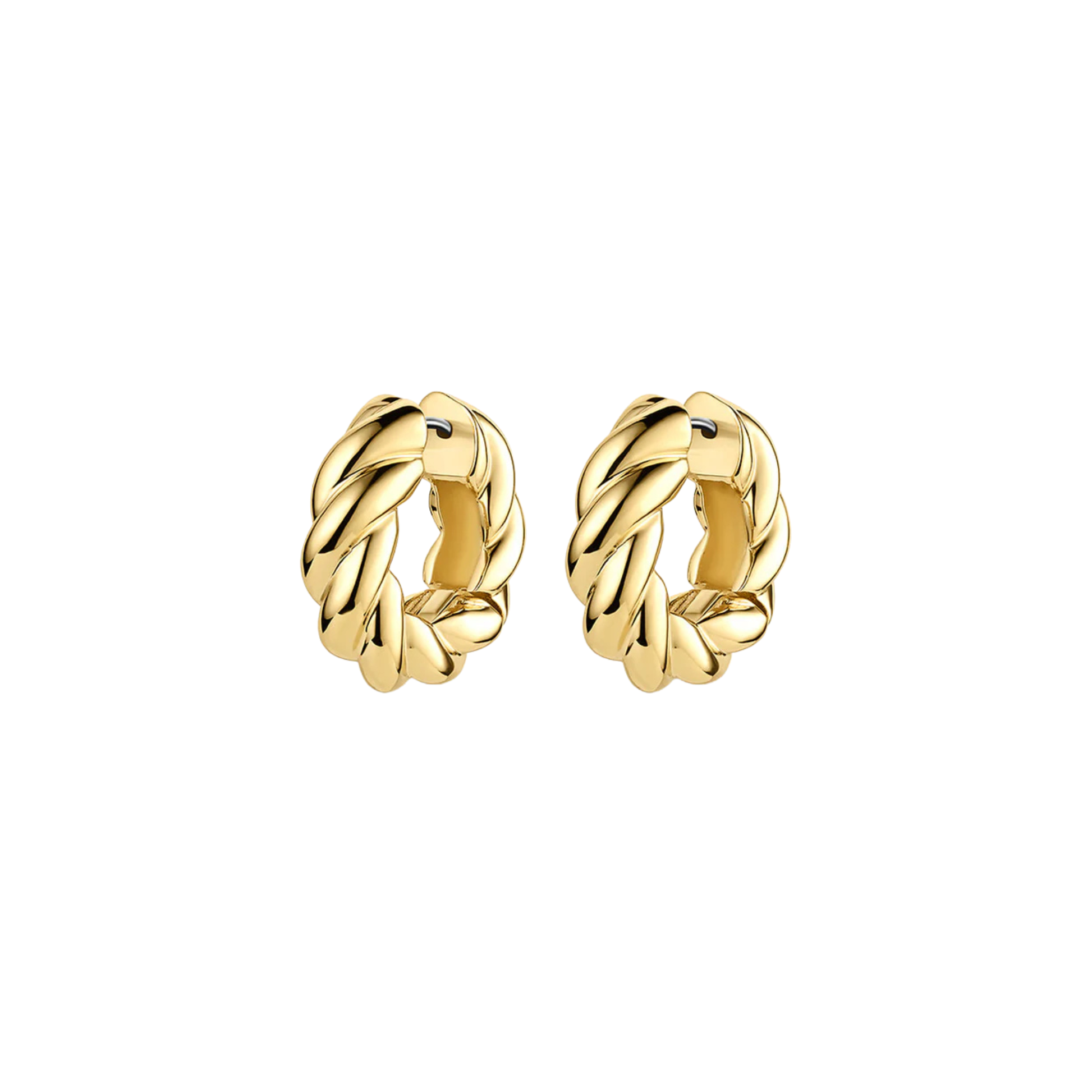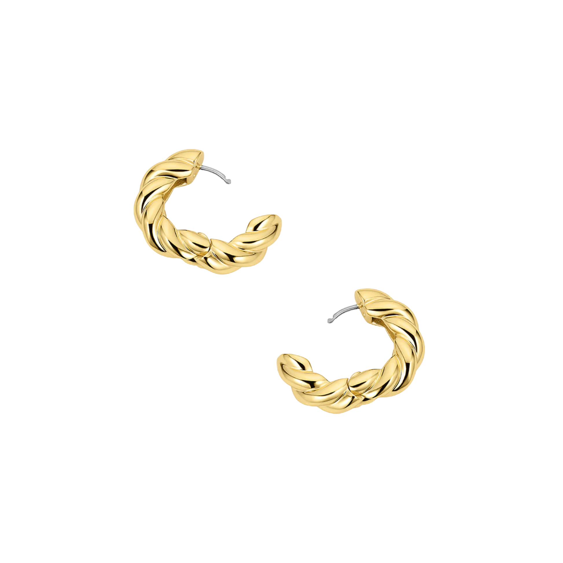 Elevate your style with the Crew Helium Hoops. Featuring a unique twist texture and helium design, these gold plated statement earrings transition seamlessly from day to night. We love wearing ours alongside gold and diamond studs.