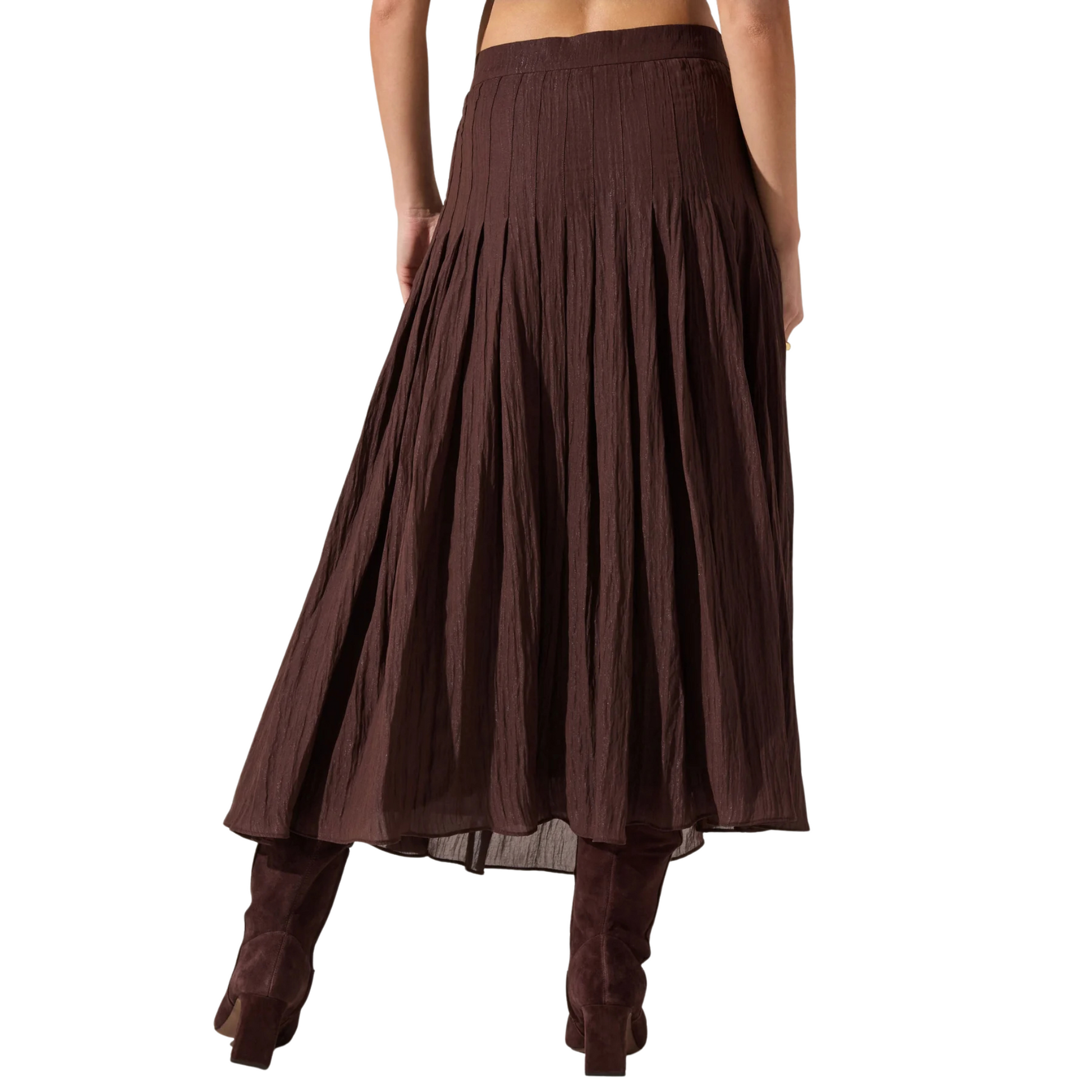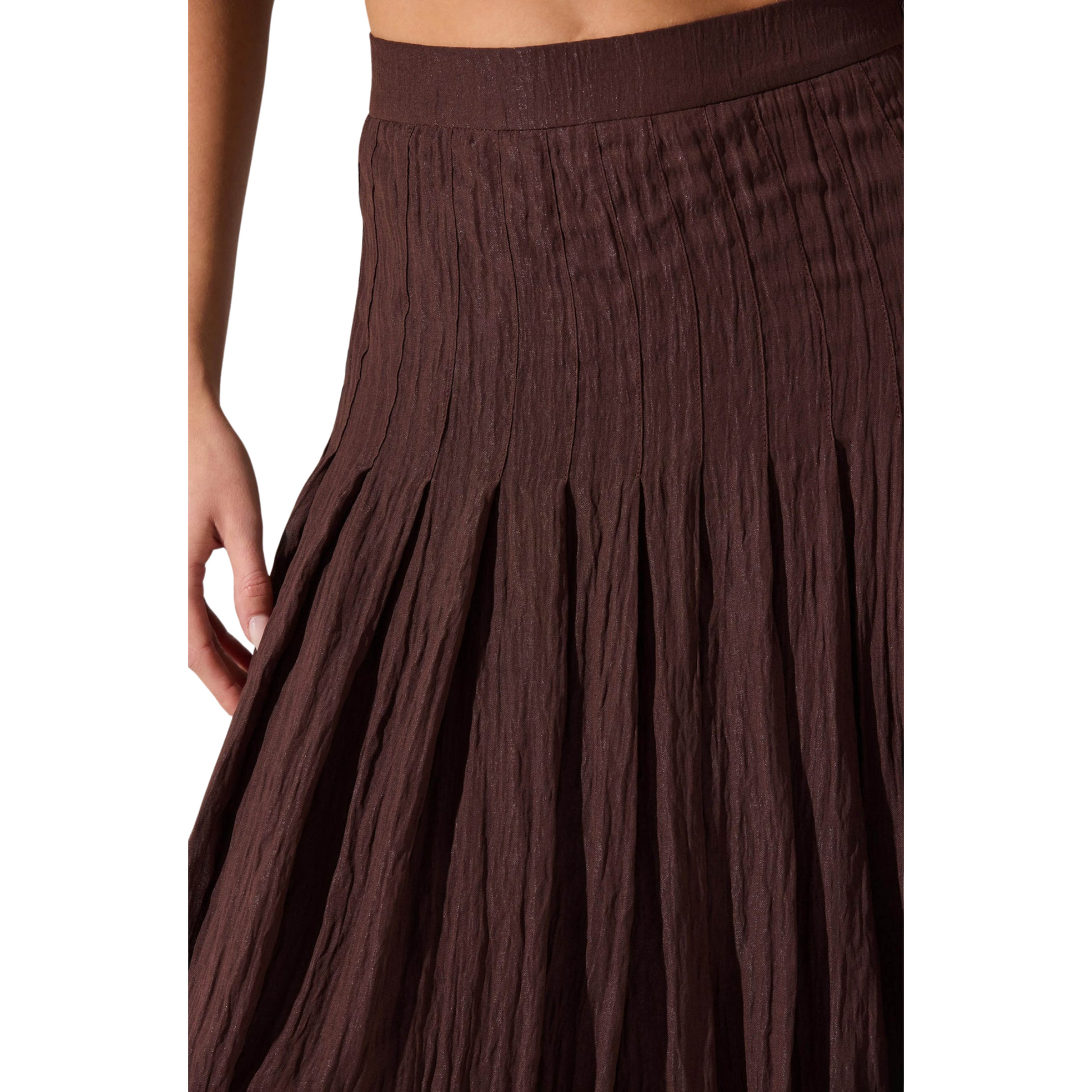 - Pleated crinkle midi skirt