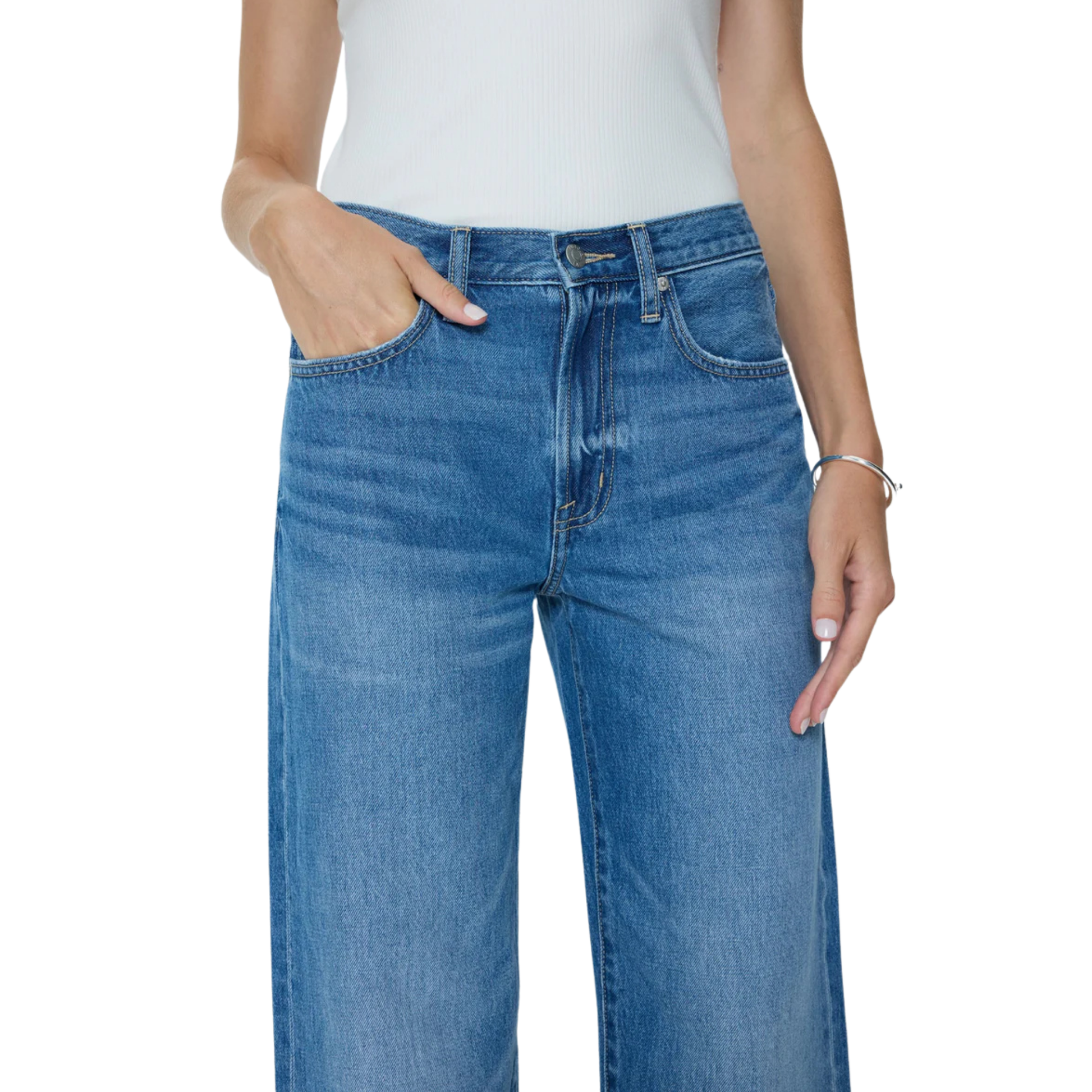 Introducing a new perspective on the boyfriend fit. Donny features a high rise and relaxed top block that opens into a softly bowed wide leg, finished with a double rolled cuff. Crafted in a light indigo wash with natural fading and whiskering, Donny delivers an off-duty sensibility.