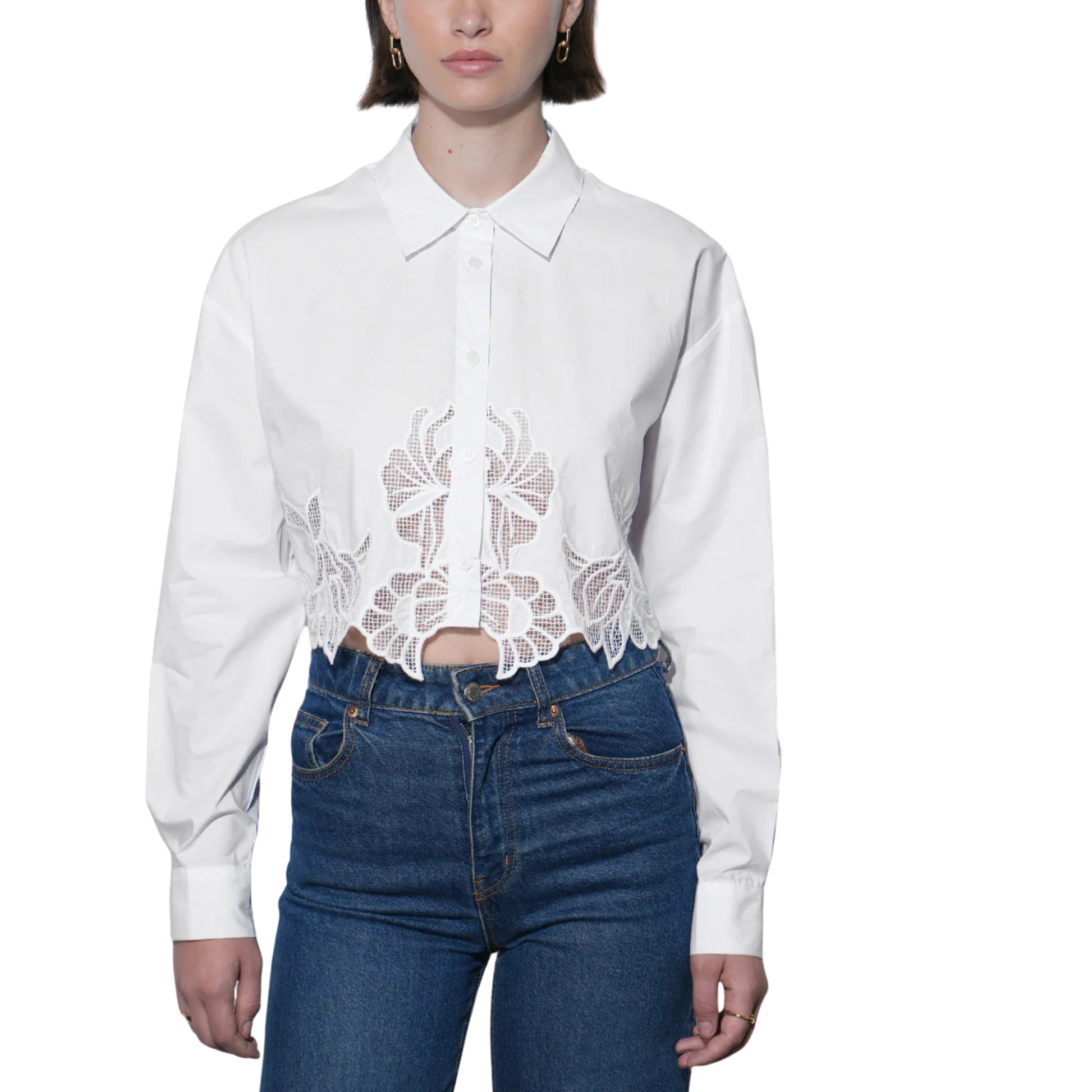 - Embroidered Hem Button Up Shirt