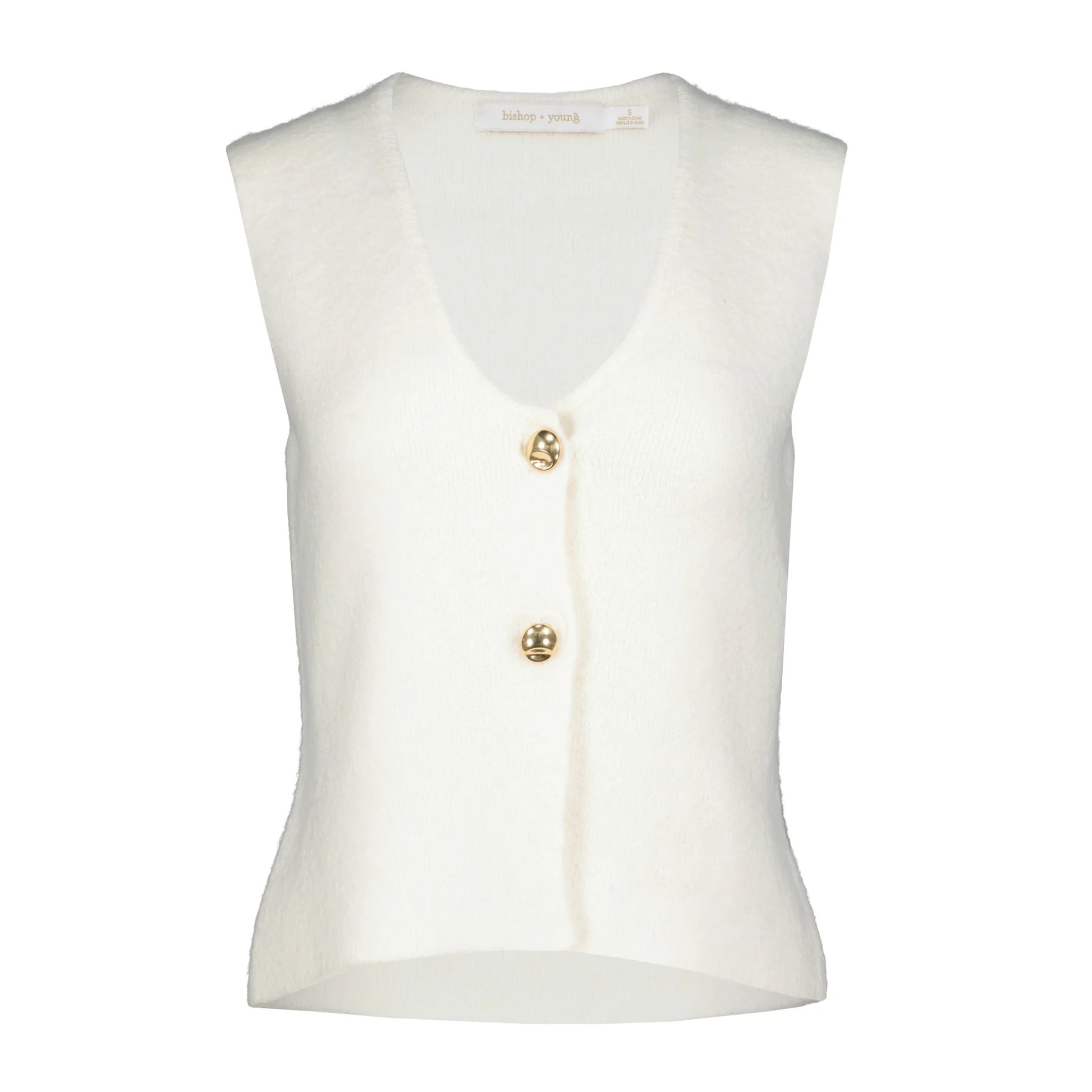 The sweater vest, perfected. The Gelina Sleeveless Sweater features a cinched waist silhouette and a clean, timeless look. A deep V-neckline with front button closure and cutaway hem complete the look. Wear it solo during warmer months or layer it over a cozy jacket for added polish.
