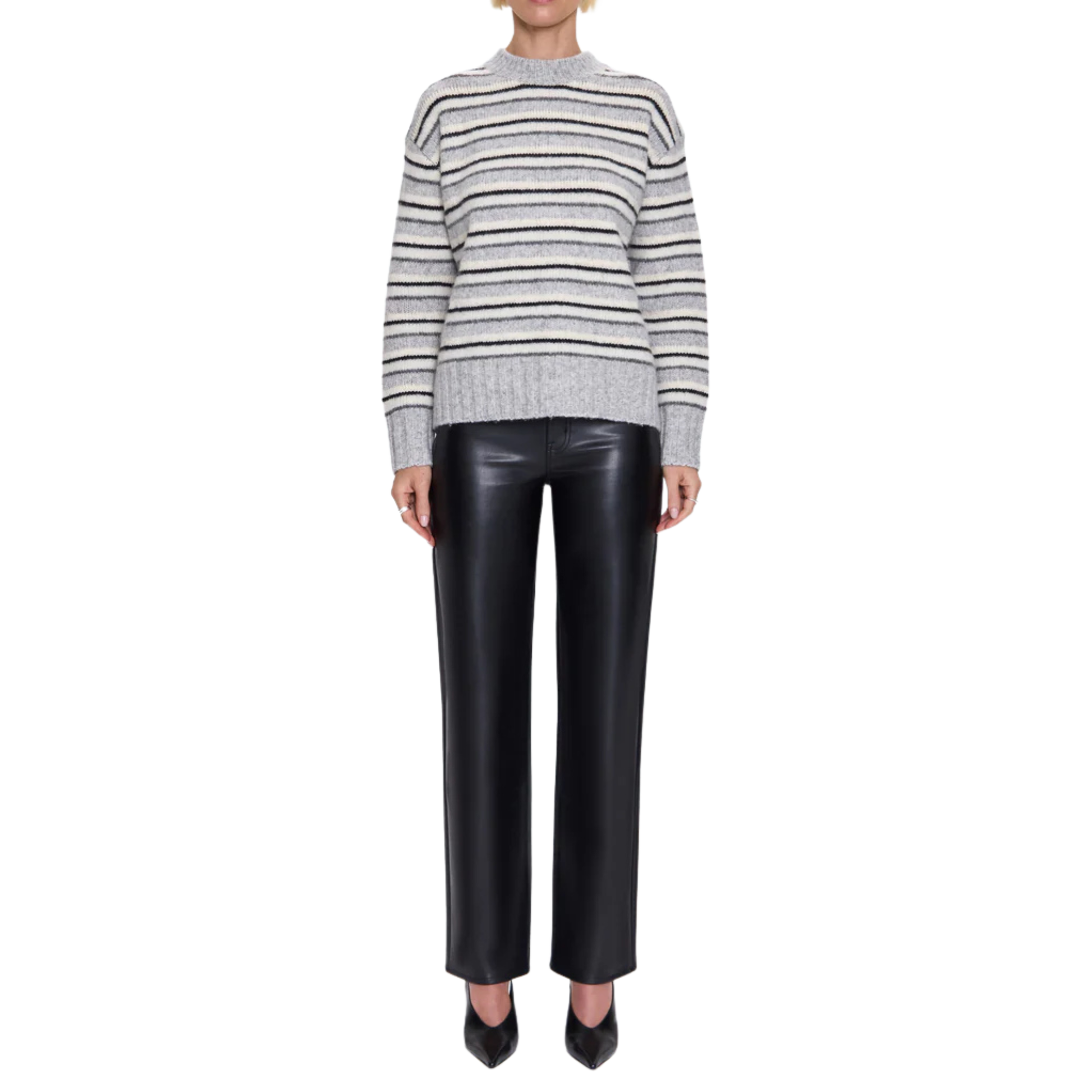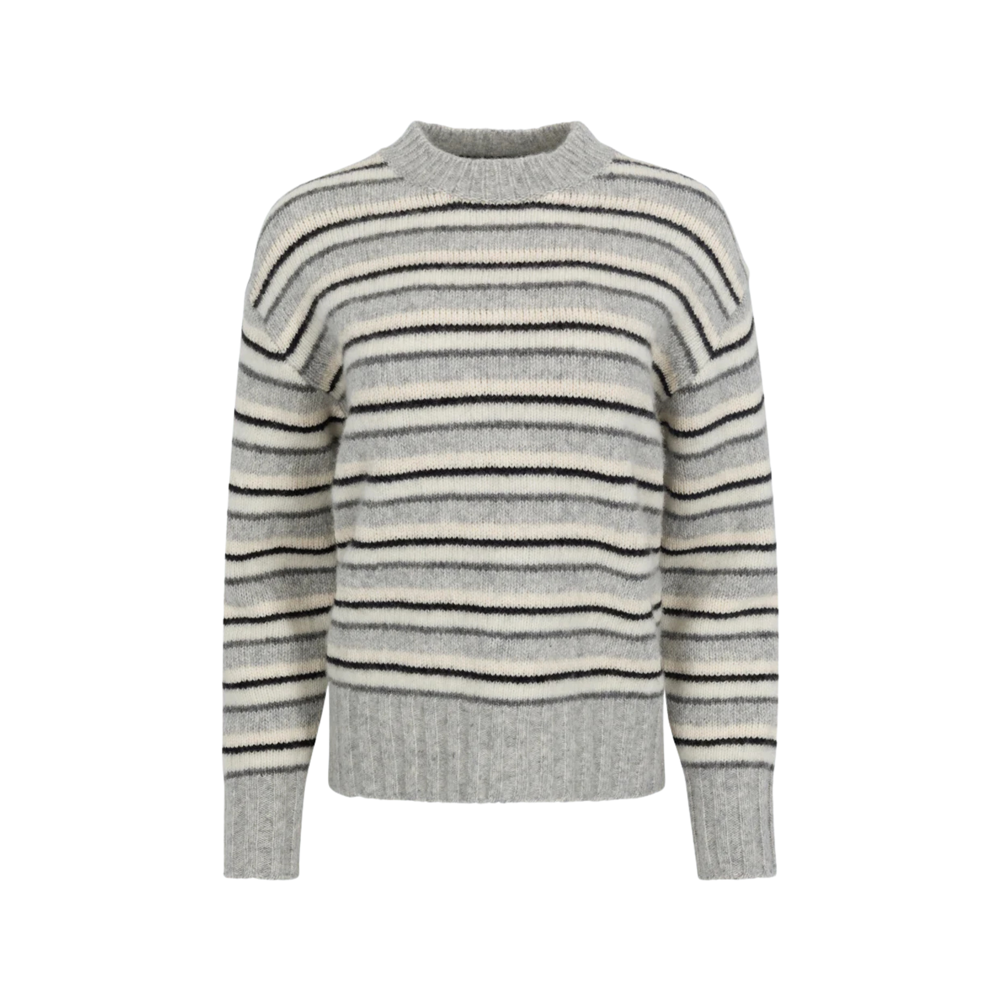 A modern essential, Hanna features an oversized fit that drapes effortlessly while maintaining its shape for a balance of comfort and structure. Knit from a wool-cotton blend, it’s soft yet substantial—perfect for layering or wearing solo. Variegated stripes in Grey White bring subtle texture and a graphic, contemporary finish.