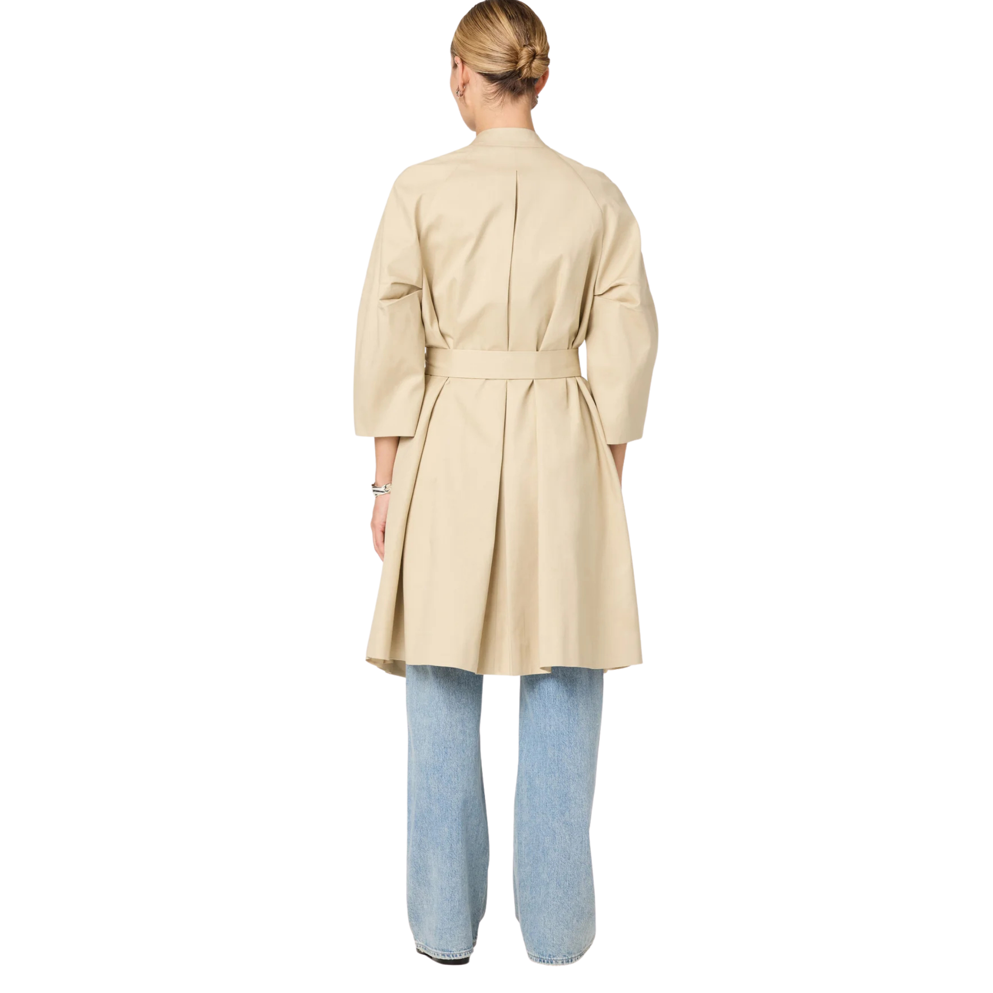 This perfectly practical, no-fuss trench coat is both versatile and effortlessly cool for everyday wear. The collarless design and belted waist give it a clean, modern finish that styles easily over any look.