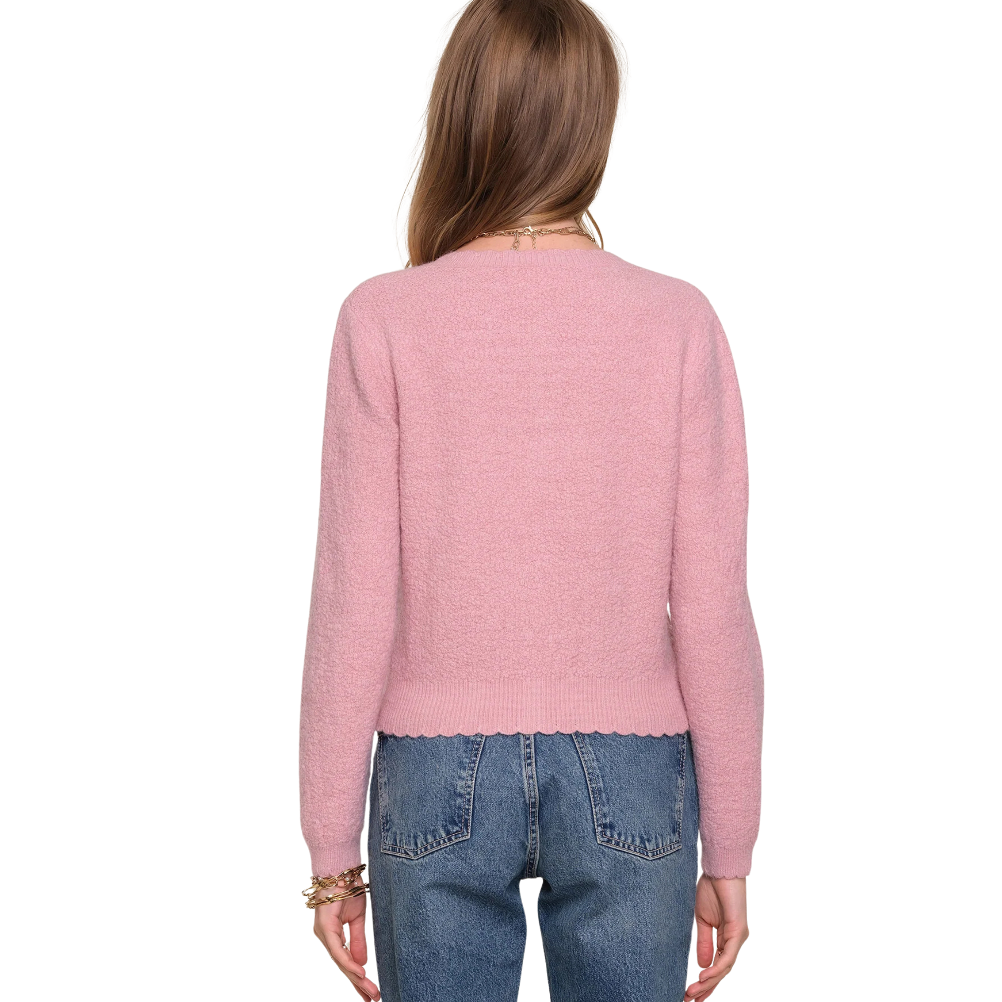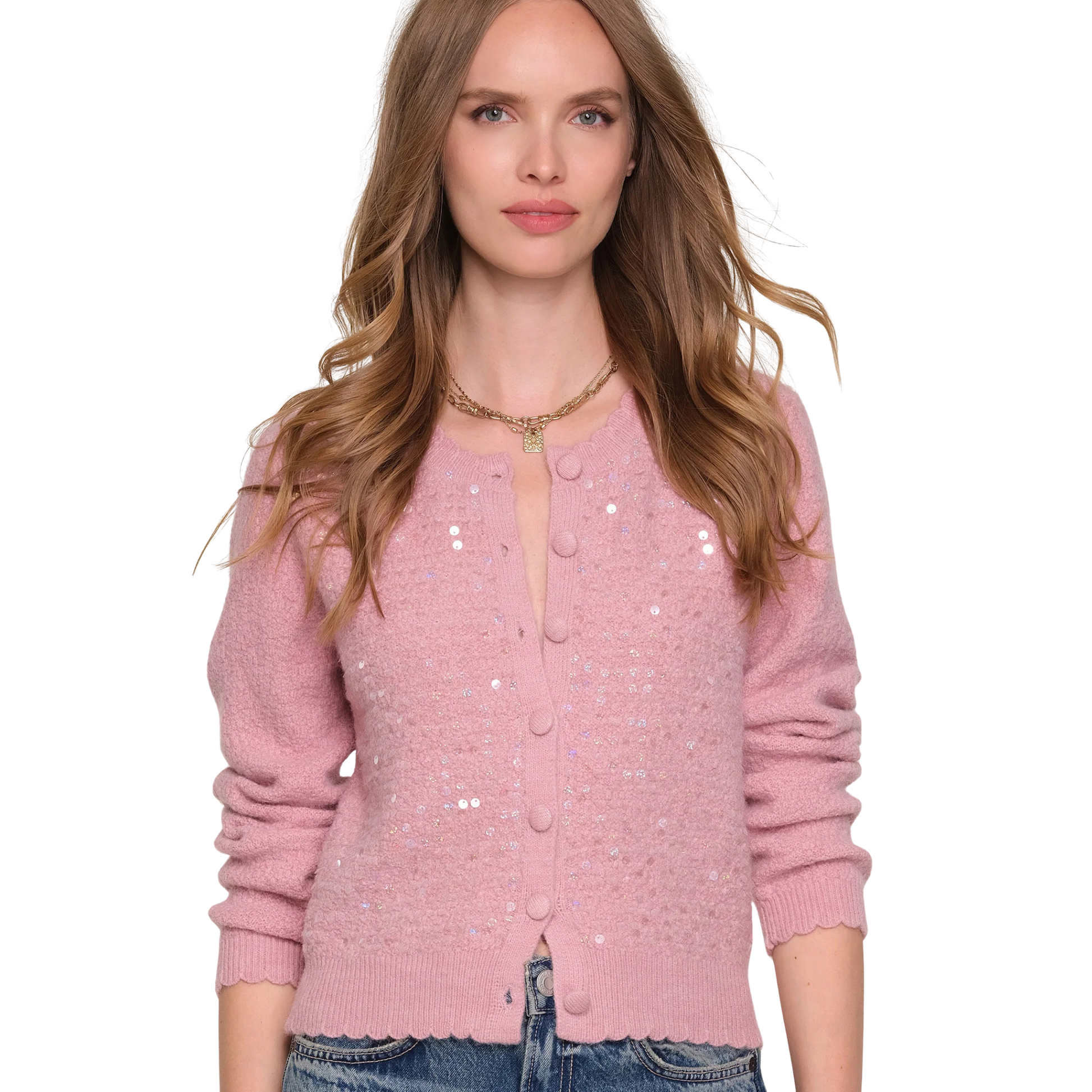 The Lettie Cardigan is the cardigan of the season. Made from a soft, melange knit it has sequin embroidery throughout the body. It features a relaxed fit and the most delicate scalloped edges.