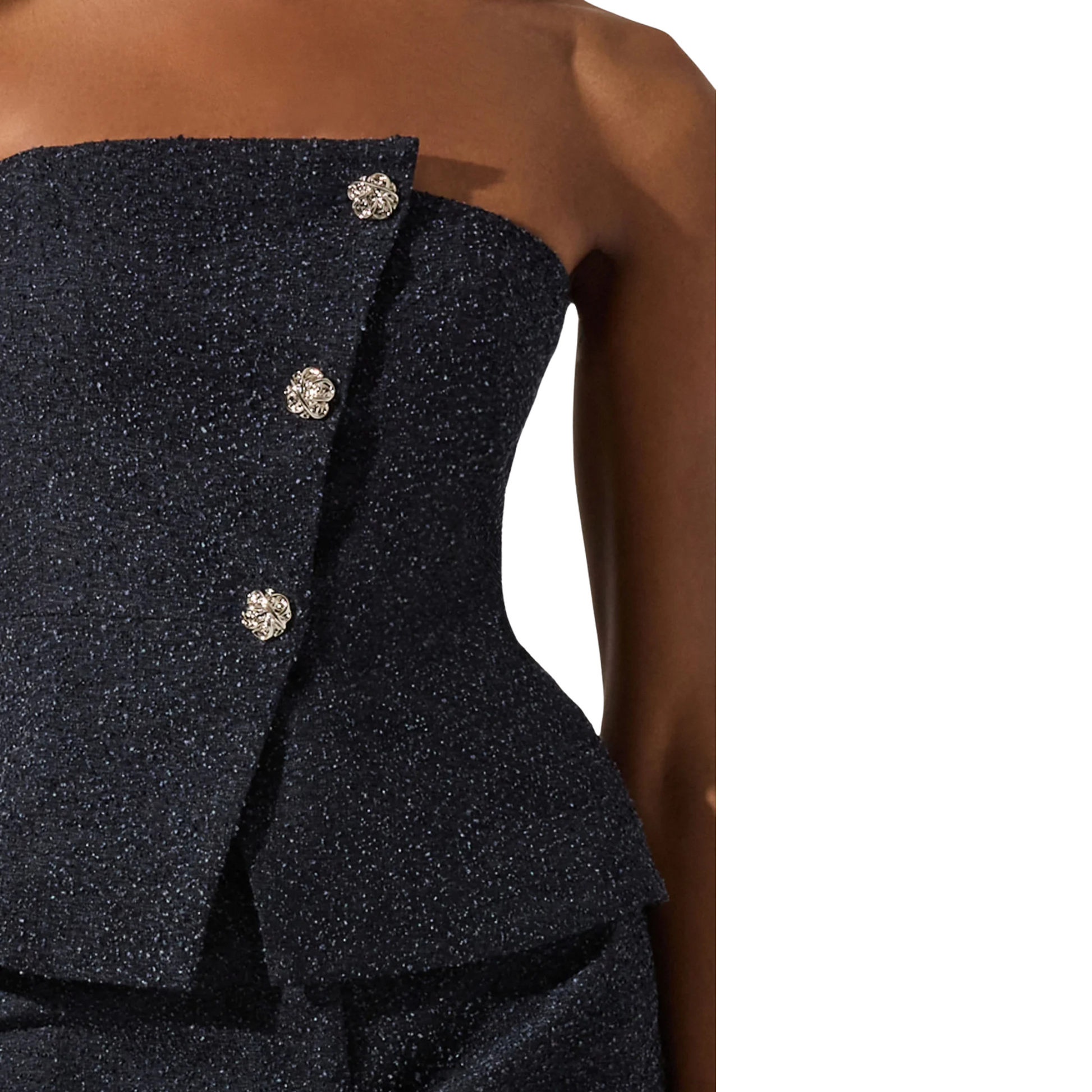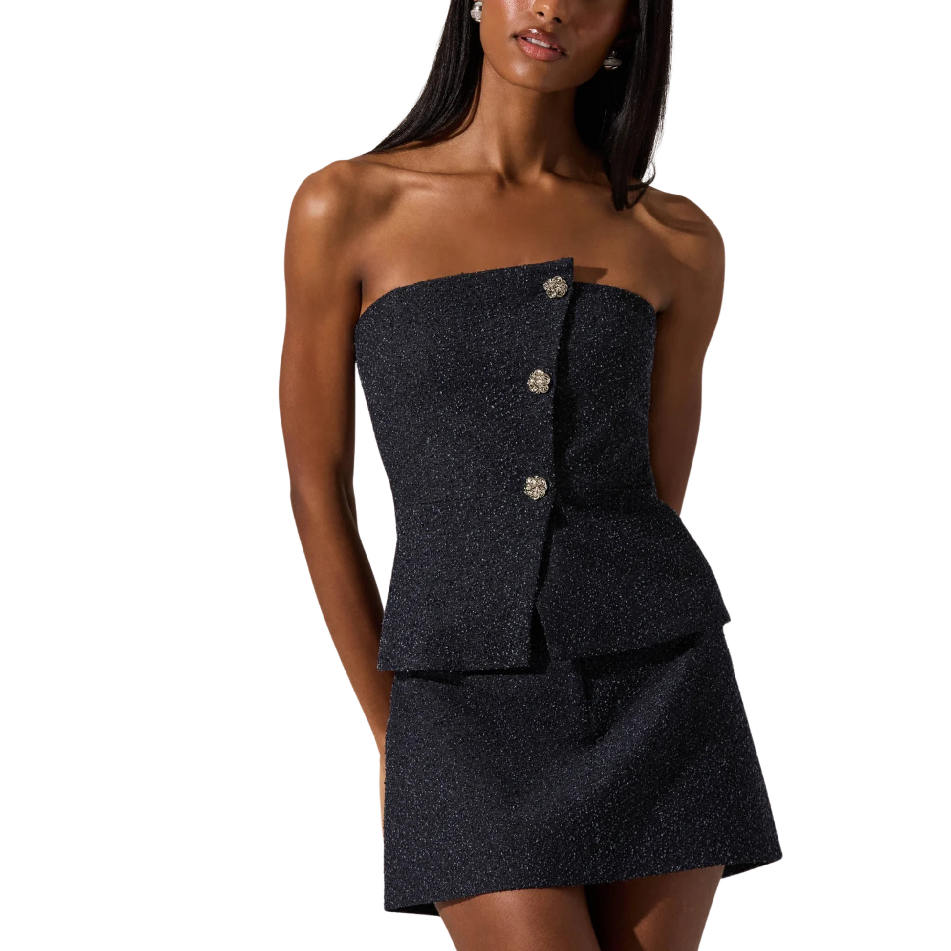 Structured and stylish, this top pairs well with the matching skirt for a refined, going-out look.