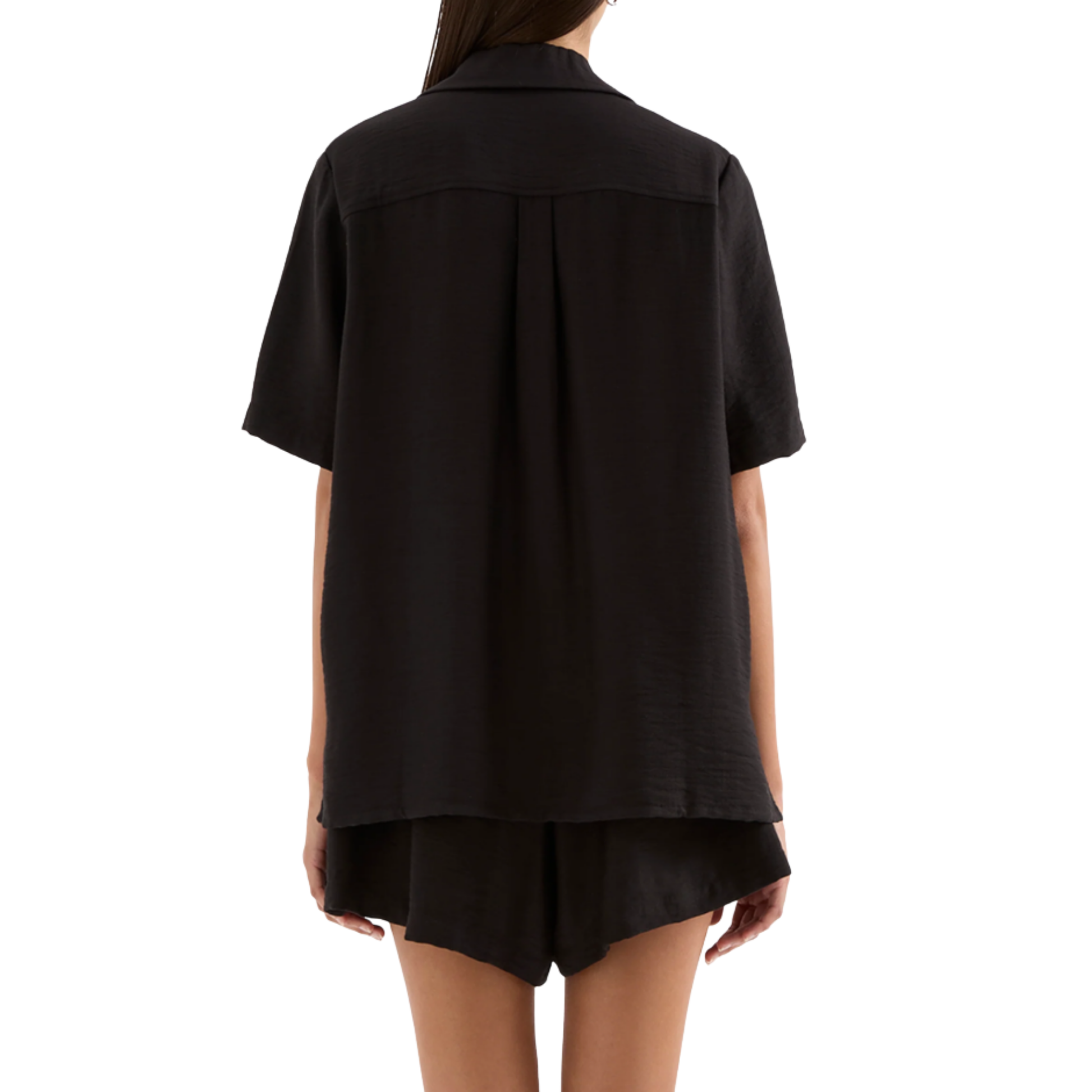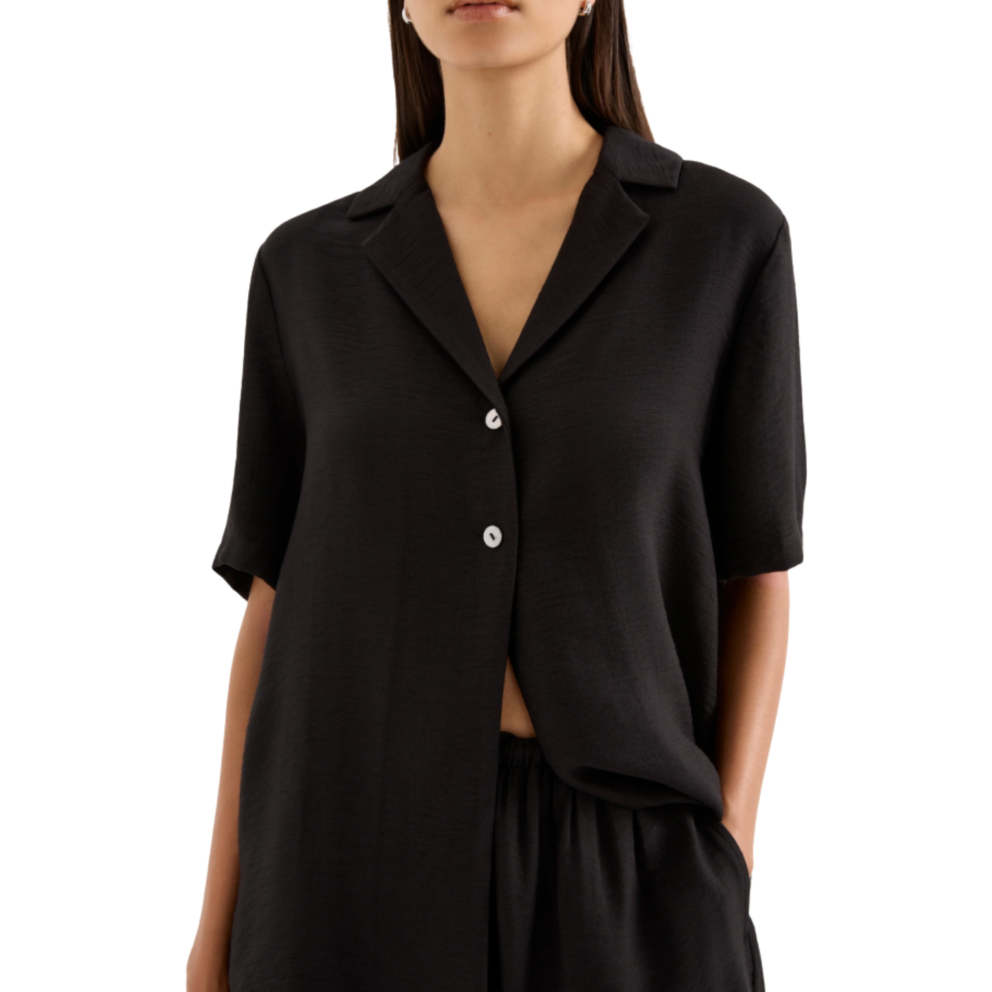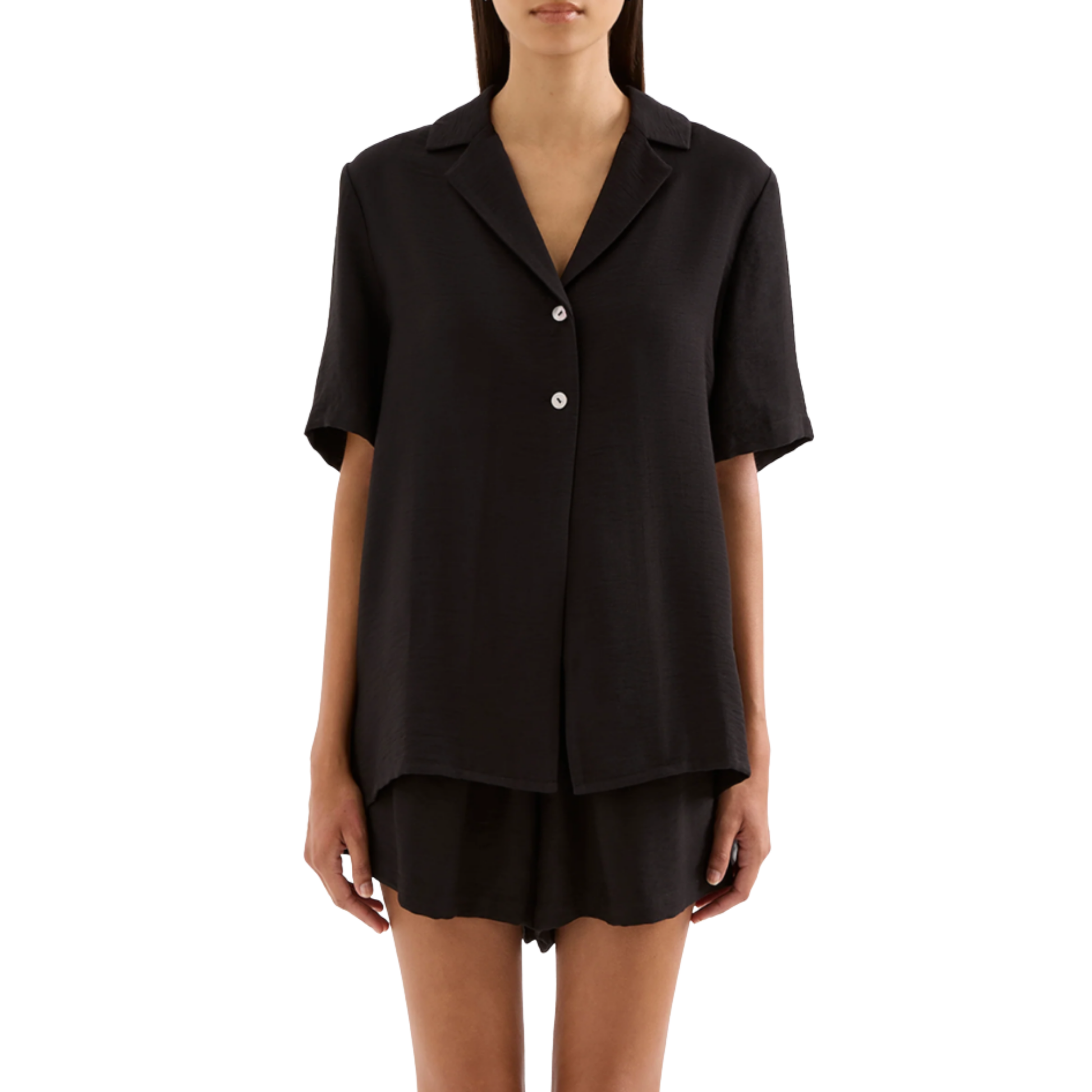 The Mona Shirt is crafted from a viscose blend fabrication that has a soft, smooth hand feel. This oversized shirt features a traditional shirt collar, front two button closure and slits at hem.
