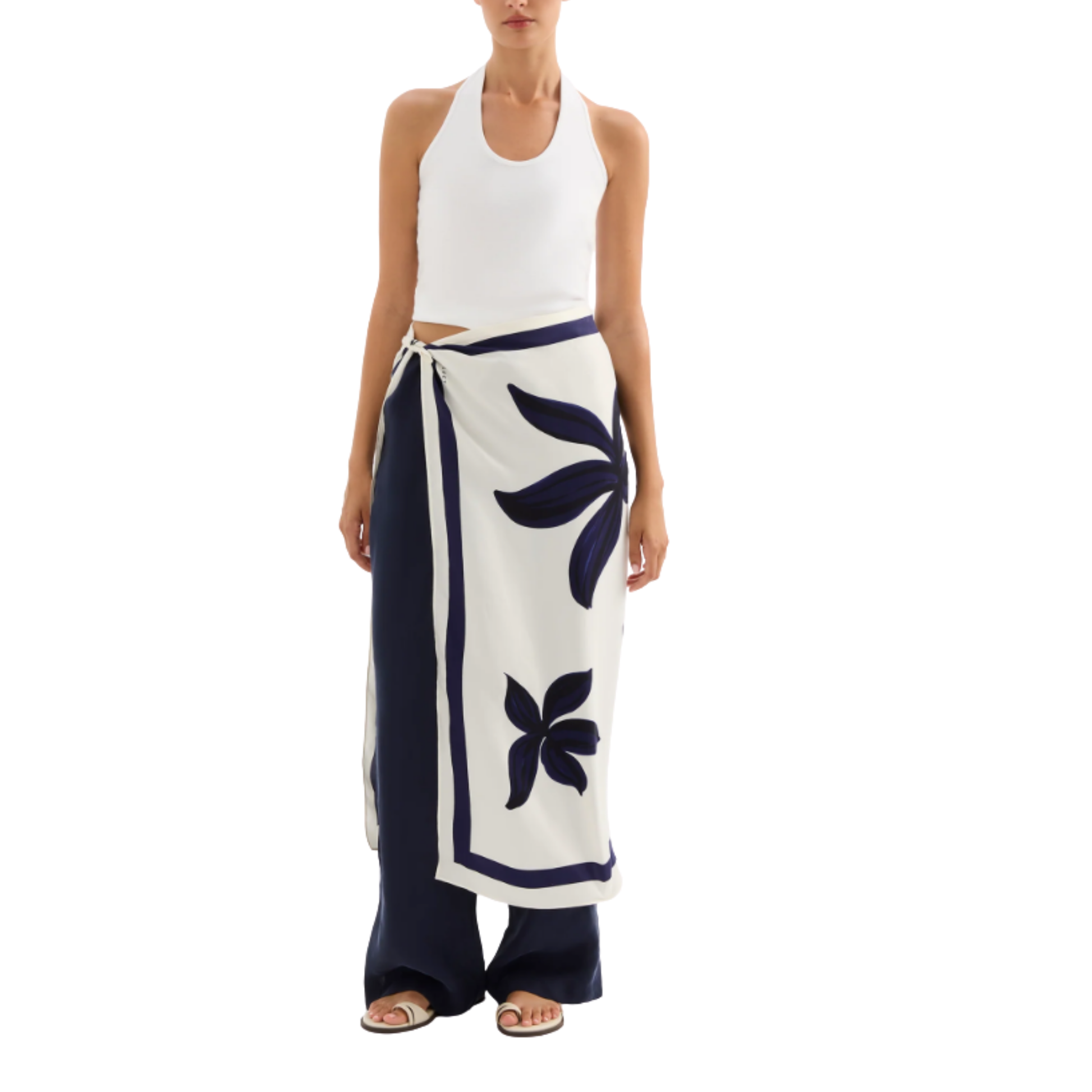 The Odessa Cupro Scarf is made in our signature cupro fabrication in our exclusive Odessa placement print. The scarf is a smooth single layer piece with a neat double turned hem. Designed with versatility, this scarf can be worn as either a top, belt, head scarf, or bag accessory.
