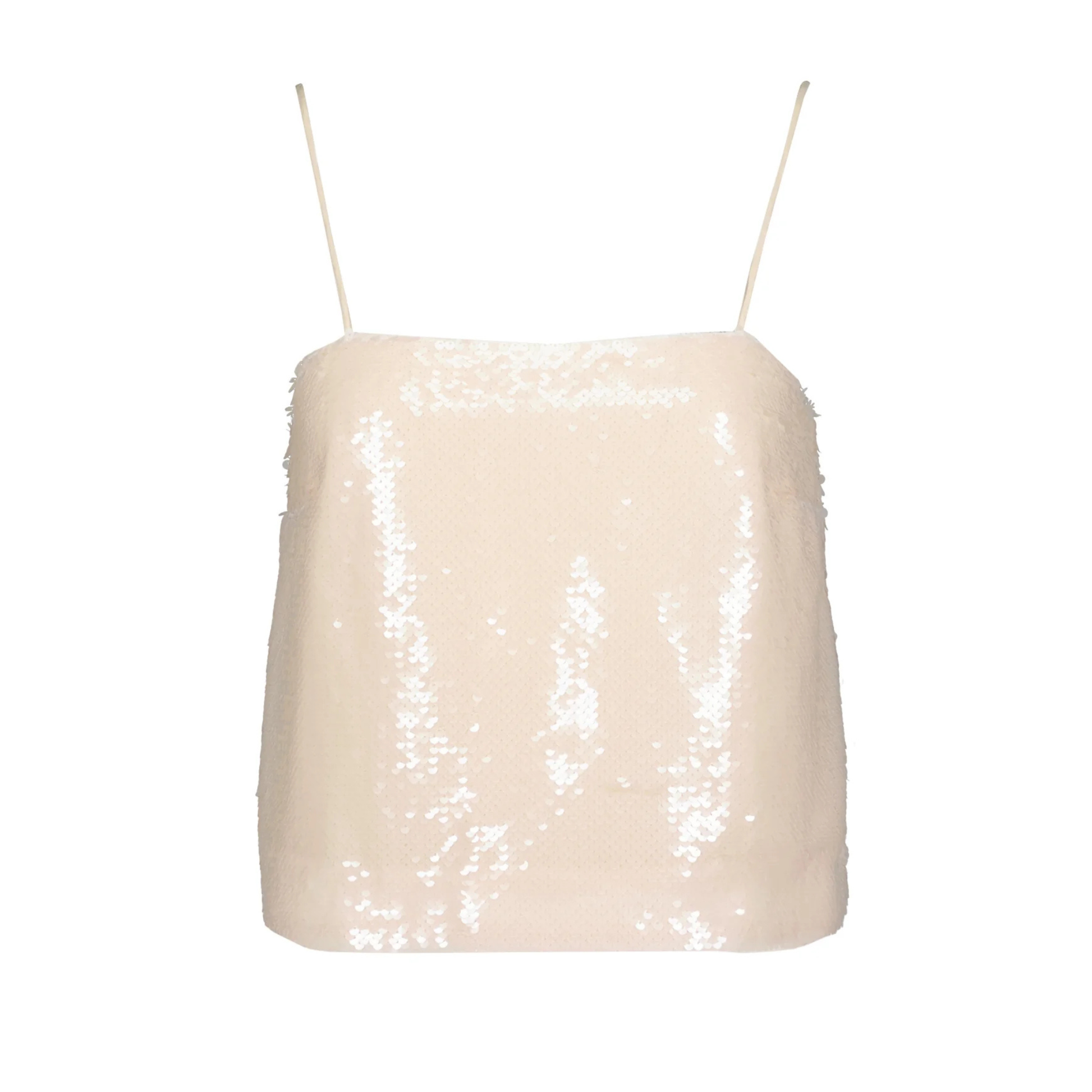 The Sublime Cami is defined by its allover sequin detail, creating a high-impact silhouette. Perfect on its own or layered under a chic blazer, it's the ultimate statement-making top. Pair this piece with its coordinating Sublime Skirt for statement elegance or with jeans for night out.