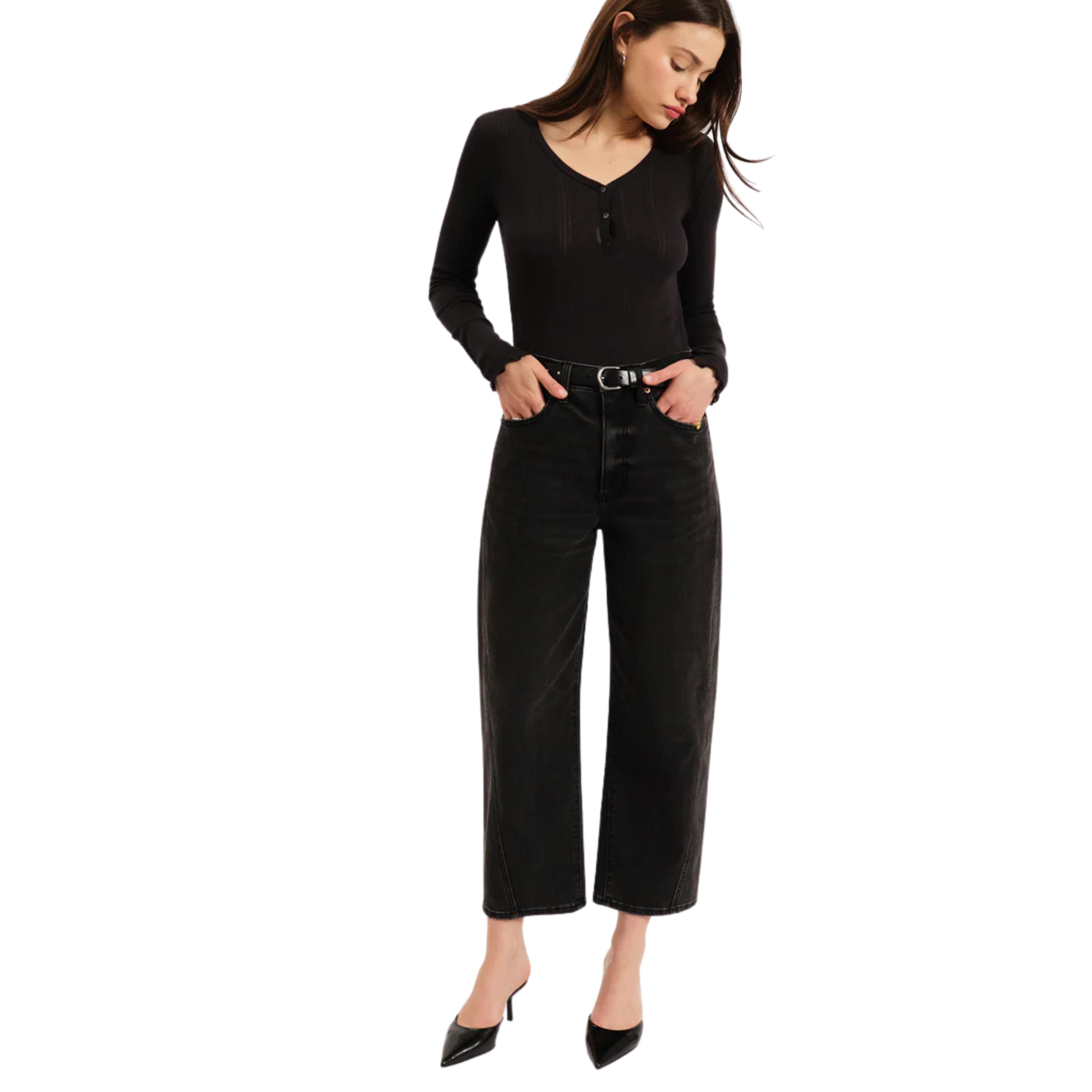 the westward is a high rise jean with a trending barrel leg silhouette